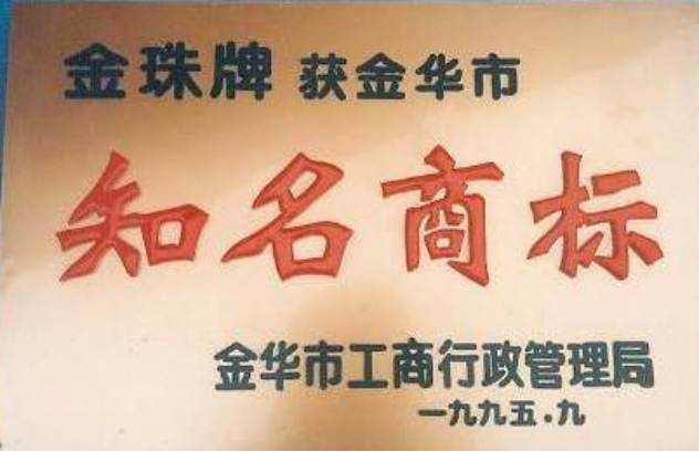 “金珠”牌商標(biāo)獲得金華市“知名商標(biāo)”稱號