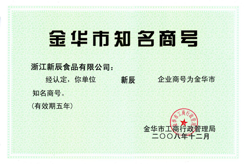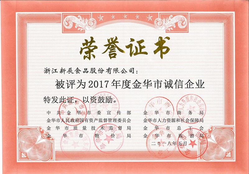 被評為2017年度“金華市誠信企業(yè)”,“區(qū)重點(diǎn)骨干工業(yè)企業(yè)”,“浙江省級骨干農(nóng)業(yè)龍頭企業(yè)”