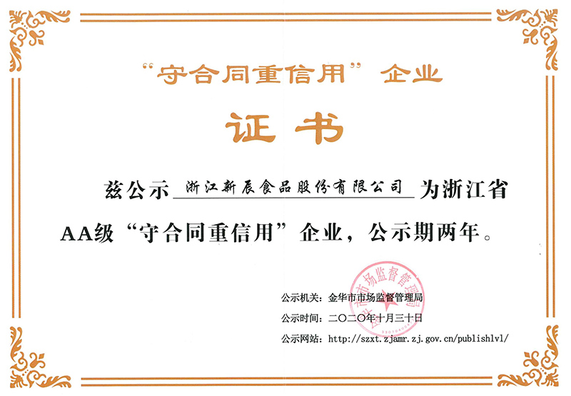被評為浙江省aa級“守合同重信用”企業(yè)